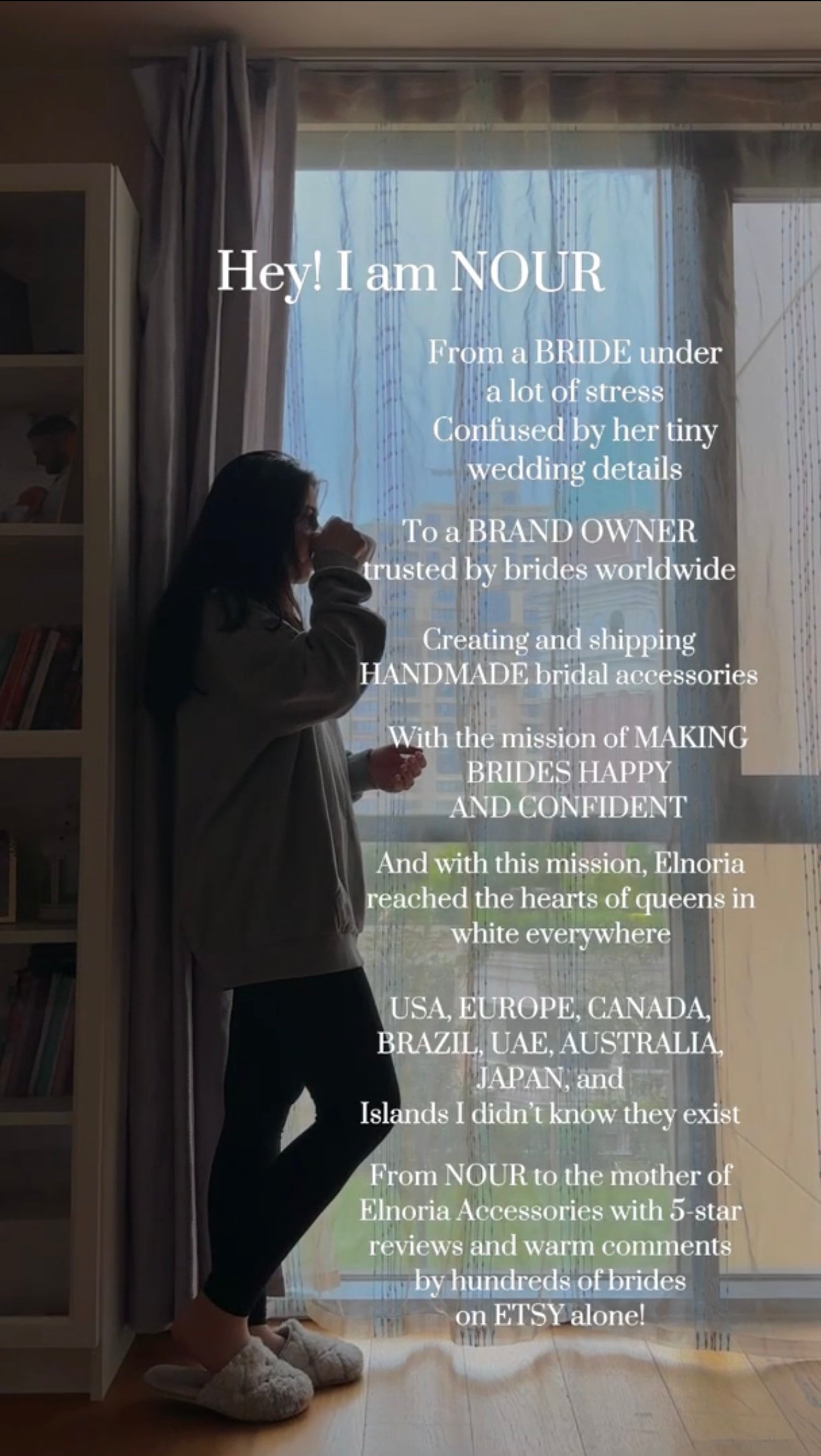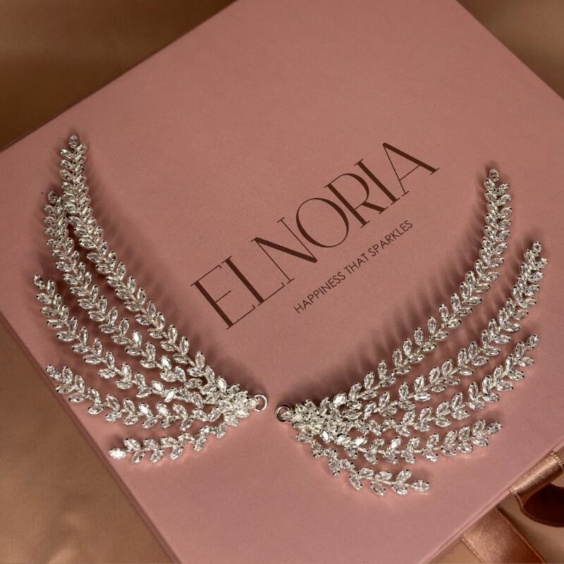 I aimed to create bridal accessories for Elnoria that would showcase both meticulous attention to detail and timeless elegance. The handmade items in our collection enhance the bride's appearance without overwhelming her with excessive visual elements.